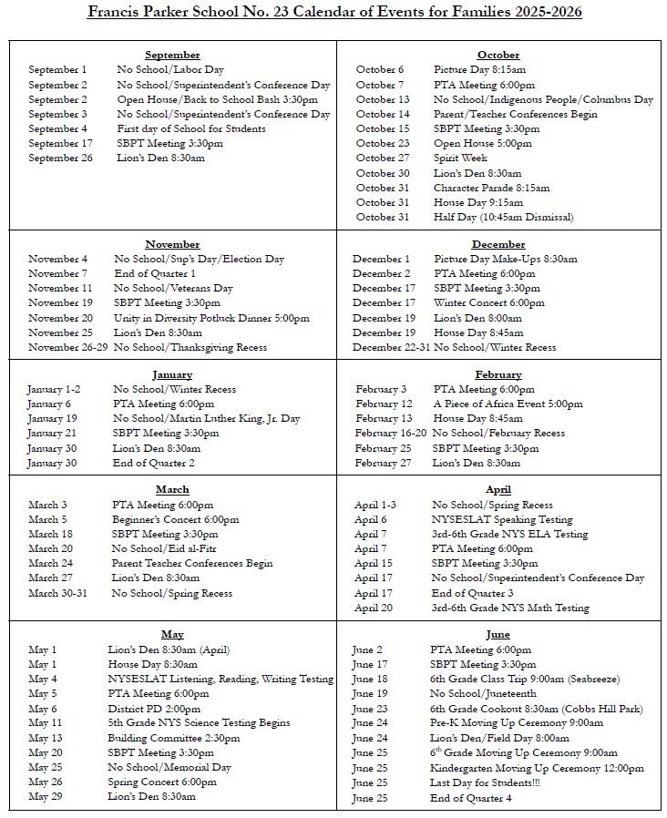 **Click Here to Access The 2025-2026 School No. 23 Events Calendar For Families**